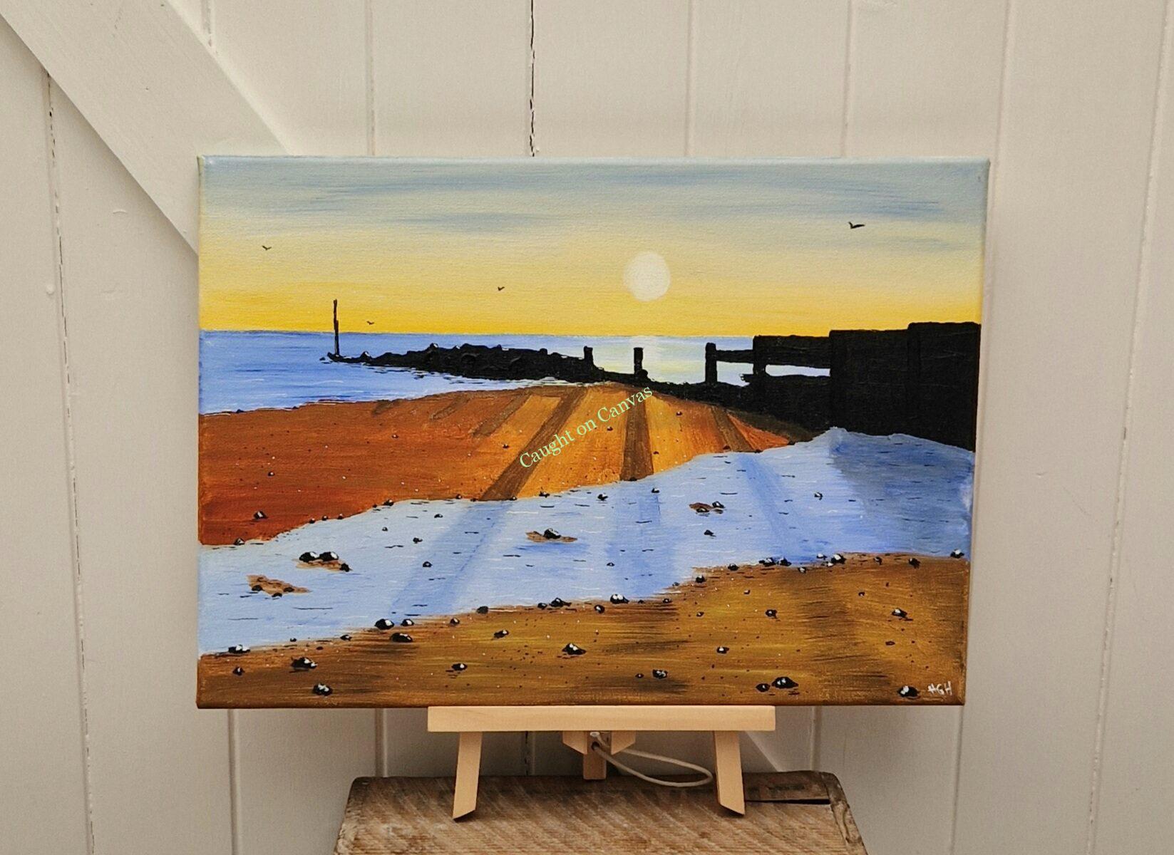 The beach at Cart Gap on the North Norfolk coast. Created using acrylics. Size is 42 x 30 x 1.5cm. Signed on the reverse and initialed on the front corner. FREE P&P TO THE UK