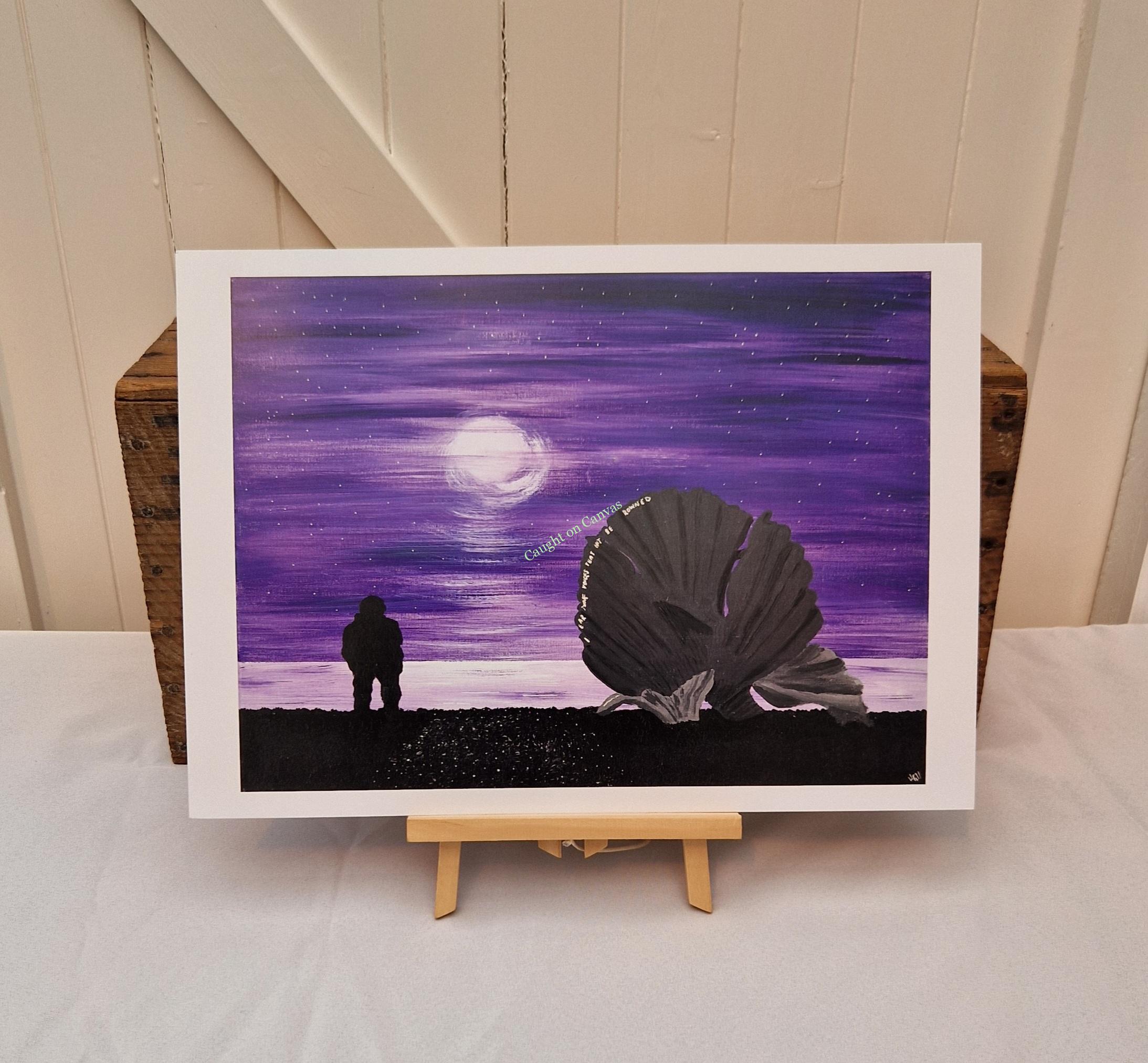 A beautiful purple skied version of the Aldeburgh sculpture on the Suffolk coast.