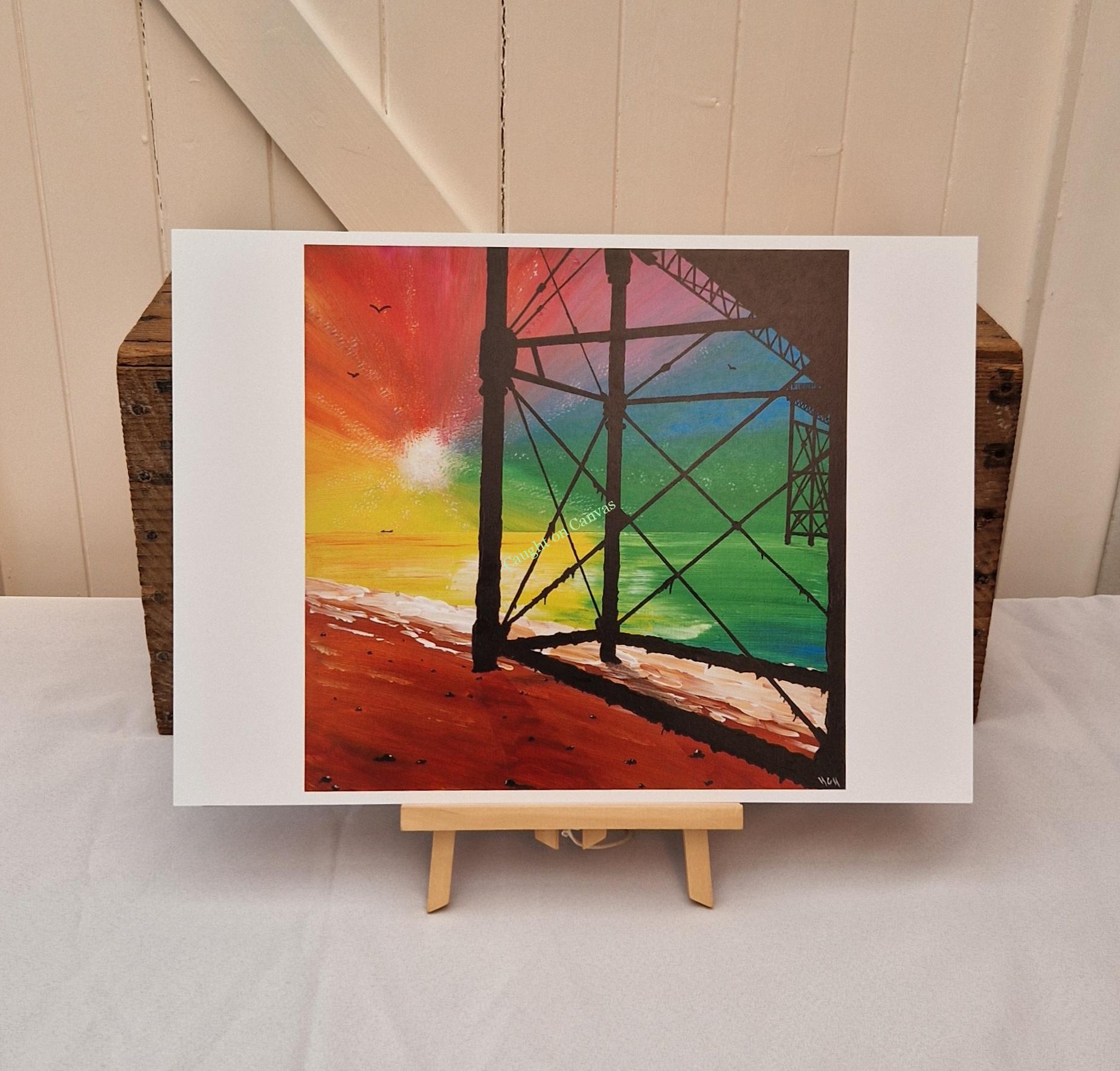 Under Cromer Pier, silhouetted by a stunning rainbow sea and sky.