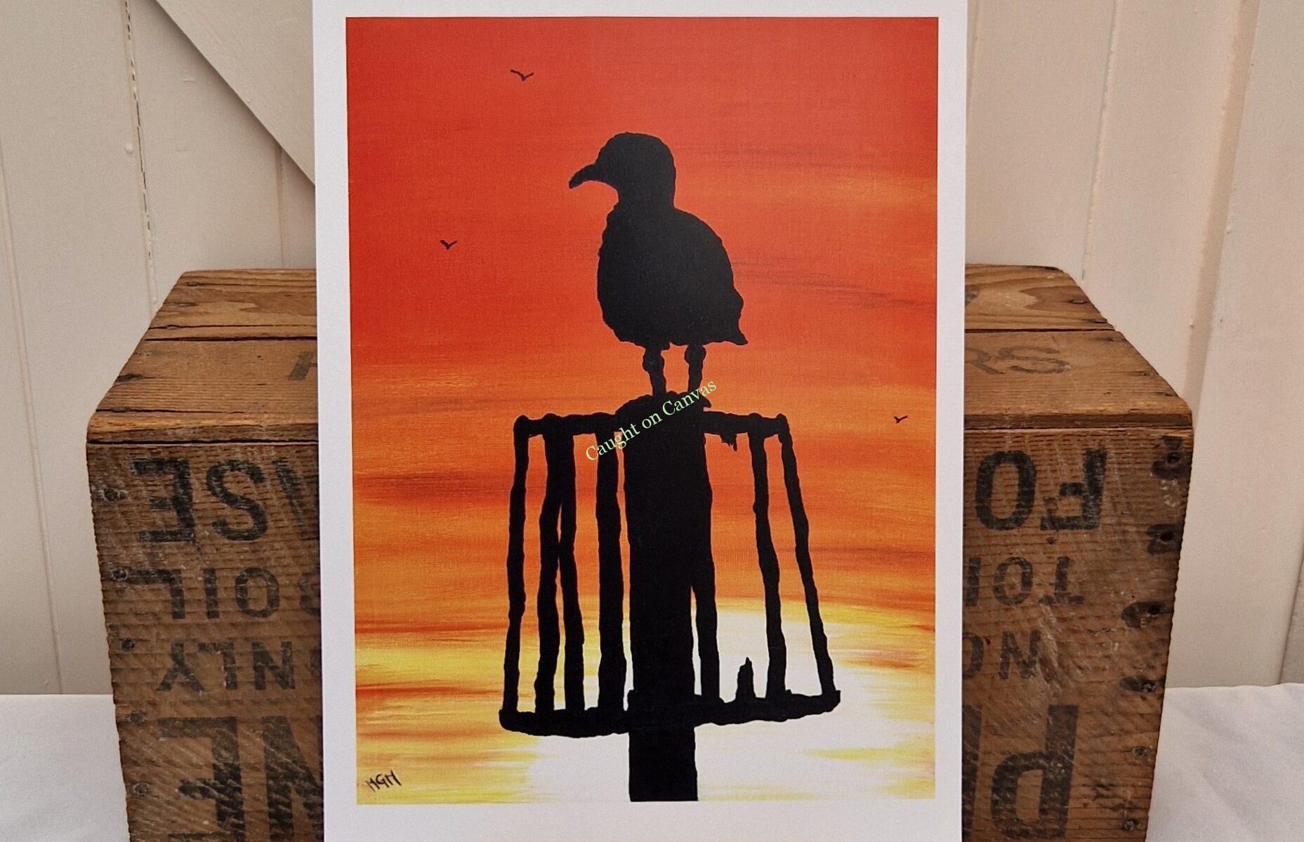 Silhouette of a seagull at Cart Gap on the North Norfolk coast.