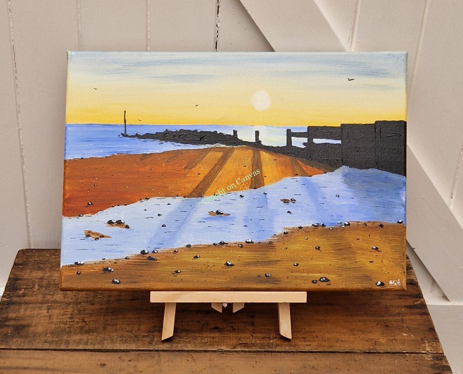 The beach at Cart Gap on the North Norfolk coast. Created using acrylics. Size is 42 x 30 x 1.5cm. Signed on the reverse and initialed on the front corner. FREE P&P TO THE UK