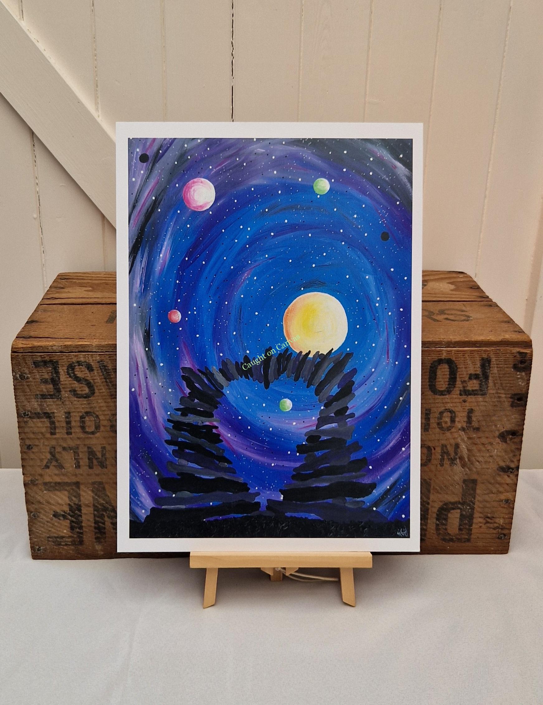 Unframed Print… The full size of the 350gsm white uncoated paper is 45 x 32 x 0.5cm. Picture size is 42 x 30 x 0.5cm. Will arrive in a cardboard backed envelope. Free postage to the UK.