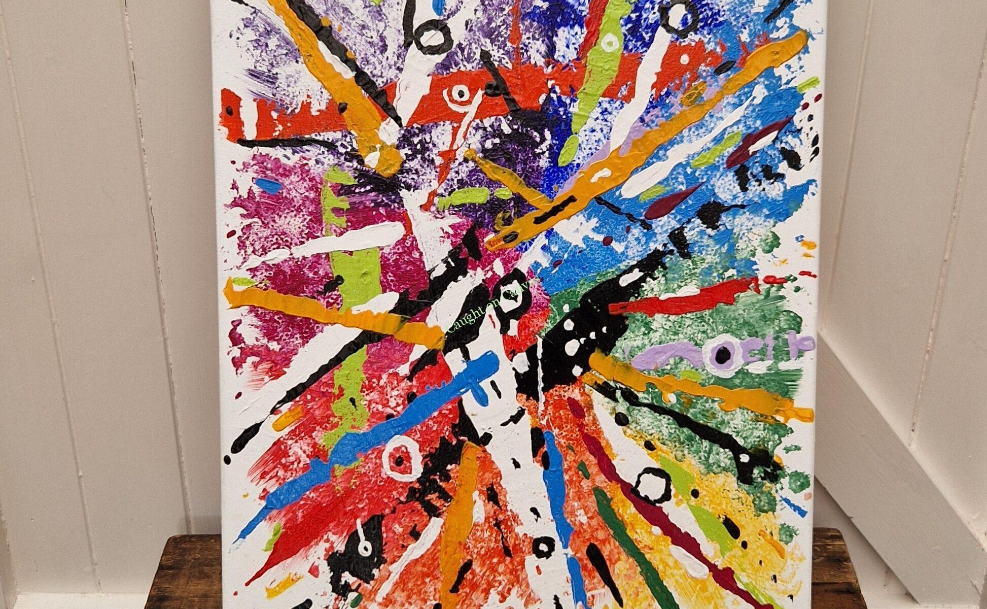 A splash of colour…Literally! Versatile as you can hang it portrait or landscape. Created using acrylics. Size is 50 x 40 x 1.5cm. Signed on the reverse and initialed on the front corner. Free P&P to the UK.