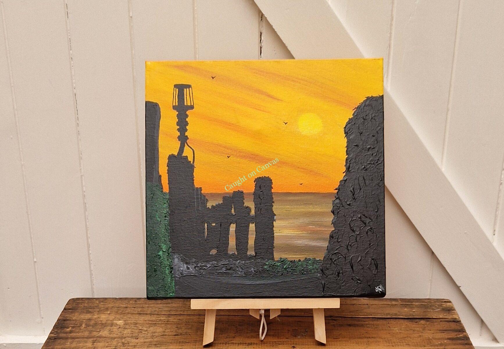 A summer sunrise taken at Overstrand on the North Norfolk coast. Created using acrylics. Size is 30.5 x 30.5 x 1.5cm. Signed on the reverse and initialed on the front corner. Free P&P to the UK