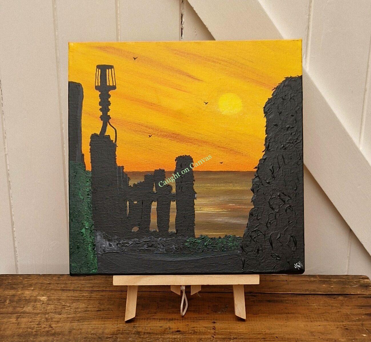 A summer sunrise taken at Overstrand on the North Norfolk coast. Created using acrylics. Size is 30.5 x 30.5 x 1.5cm. Signed on the reverse and initialed on the front corner. Free P&P to the UK