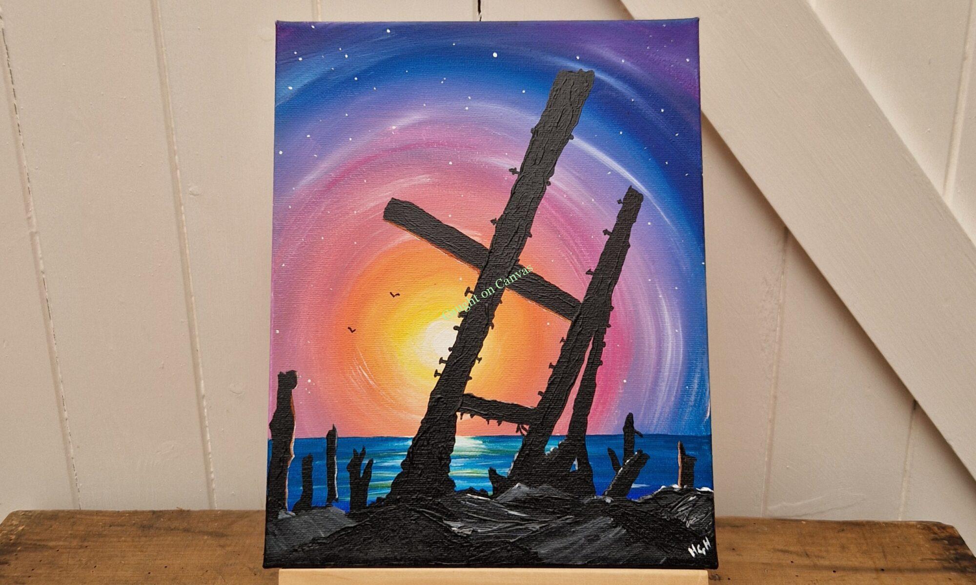 Original canvas created using acrylics. Signed on the reverse and initialled on the front corner. Size is 25 x 20 x 1.5cm.