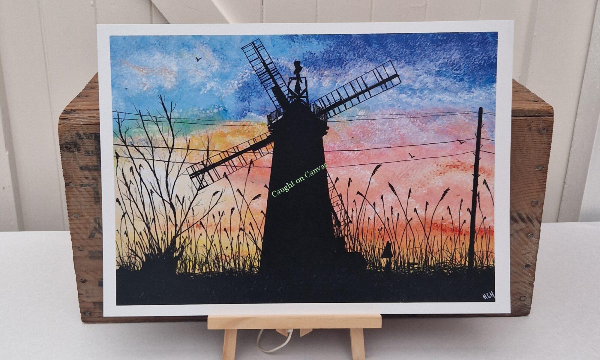 Horsey Mill on the Norfolk Broads, silhouetted in stunning colour.