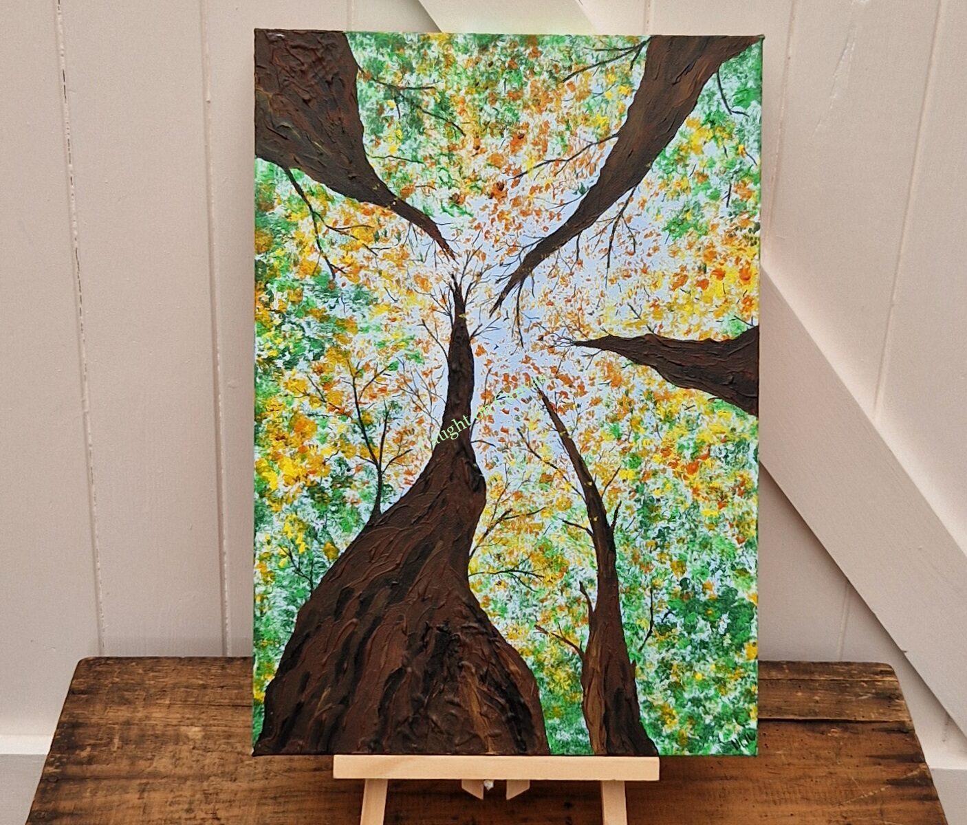 Such a versatile original canvas. Display portrait or landscape. Created using acrylics. Size is 42 x 30 x 1.5cm. Signed on the reverse and initialed on the front corner.