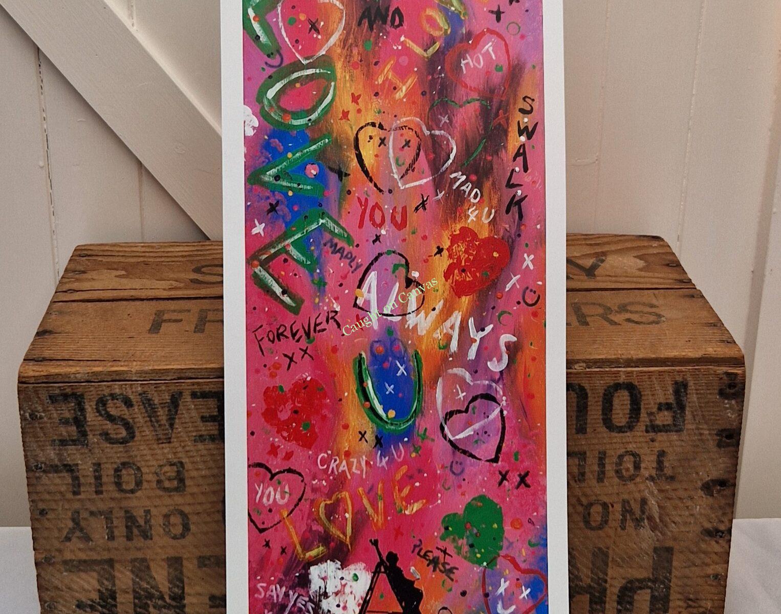 Unframed print (2)…  The full size of the 350gsm white uncoated paper is 64 x 26 x 0.5cm. Picture size: 61 x 23 x 0.5cm. Will arrive in a cardboard backed envelope. Free postage to the UK.