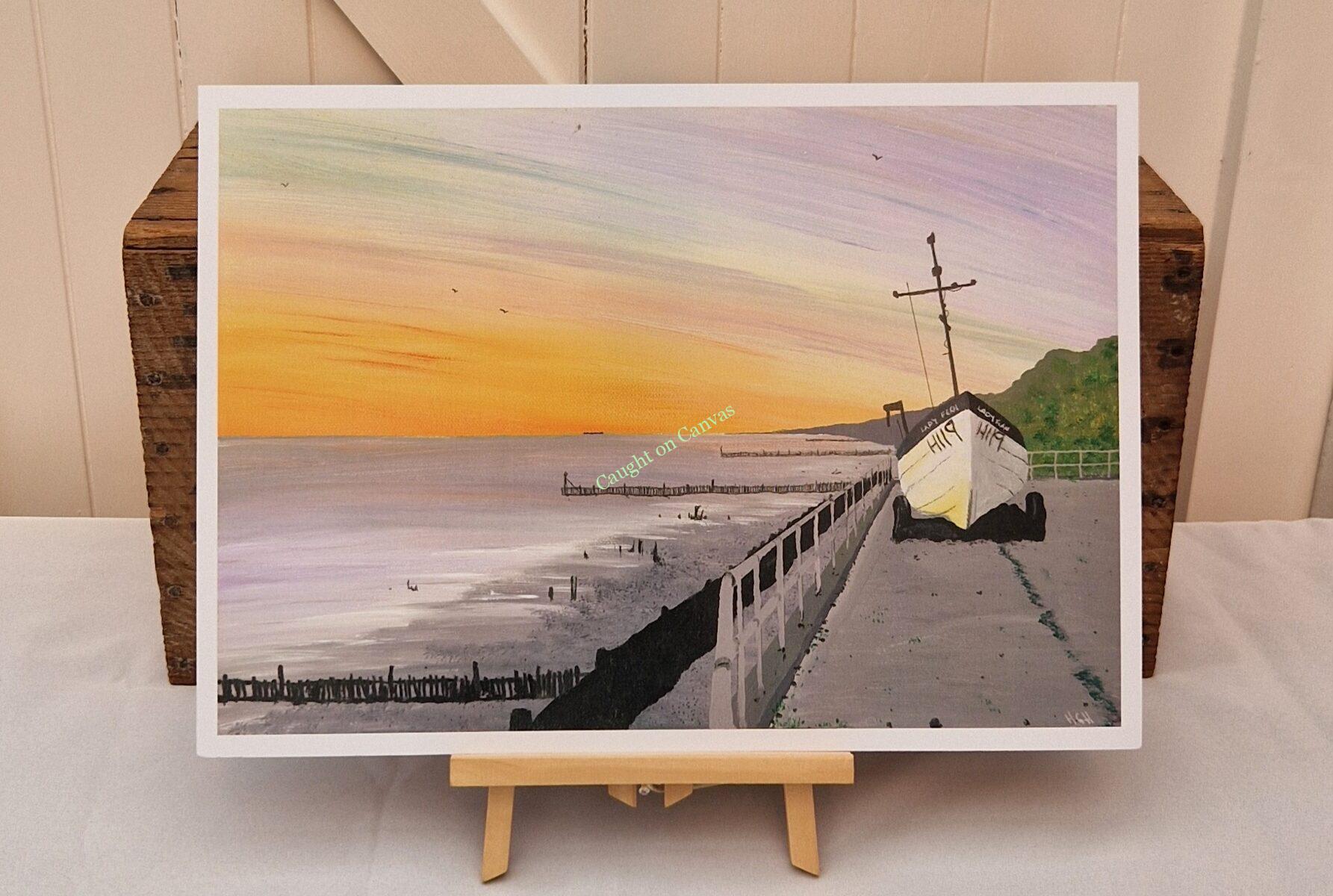 A stunning image of a sea fishing boat on the shoreline at Mundesley beach on the North Norfolk coast.