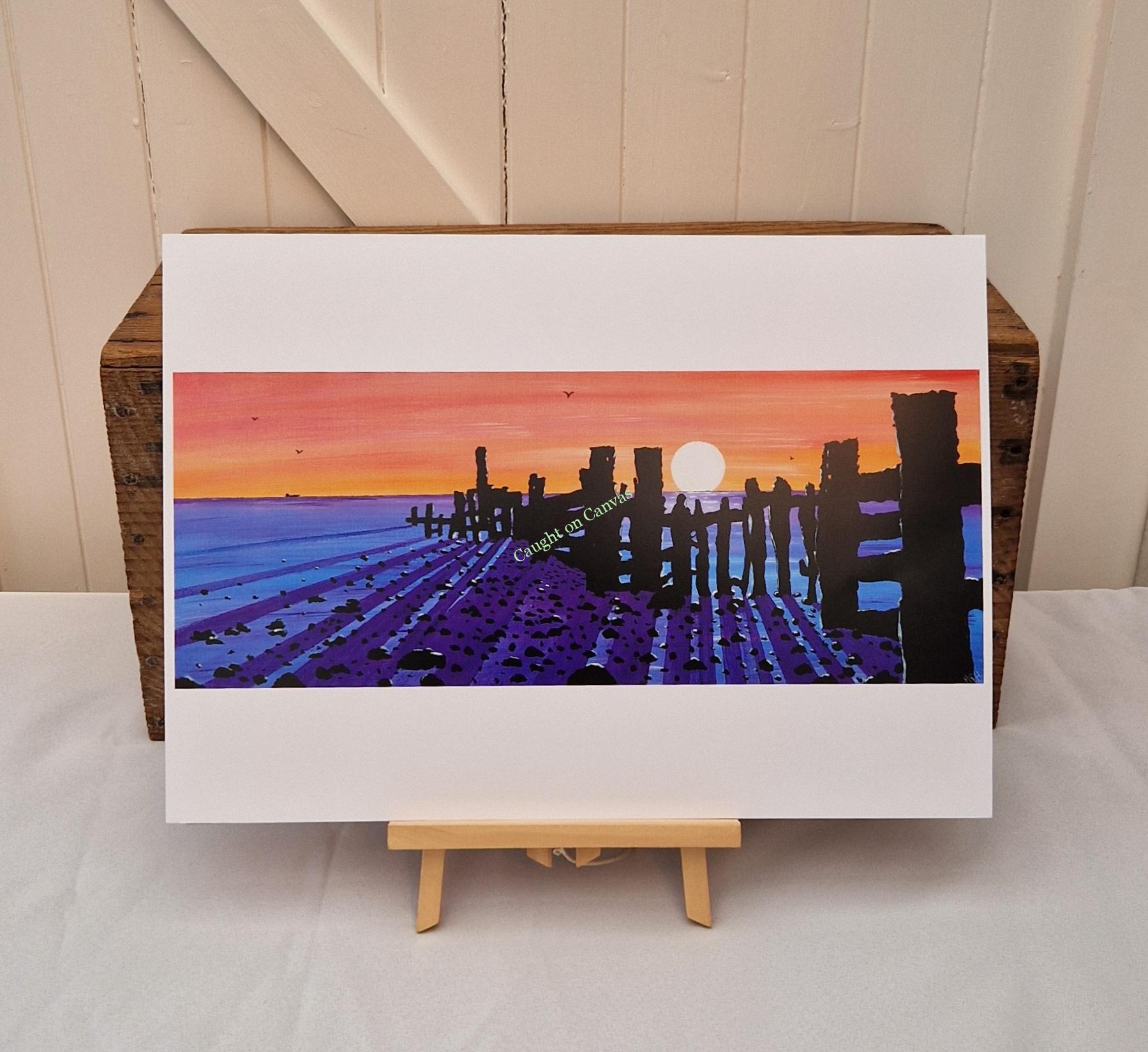 Unframed print… The full size of the 350gsm white uncoated paper is 45x 32 x 0.5cm. Picture size is 44 x 17 x 0.5cm. Will arrive in a cardboard backed envelope. Free postage to the UK.
