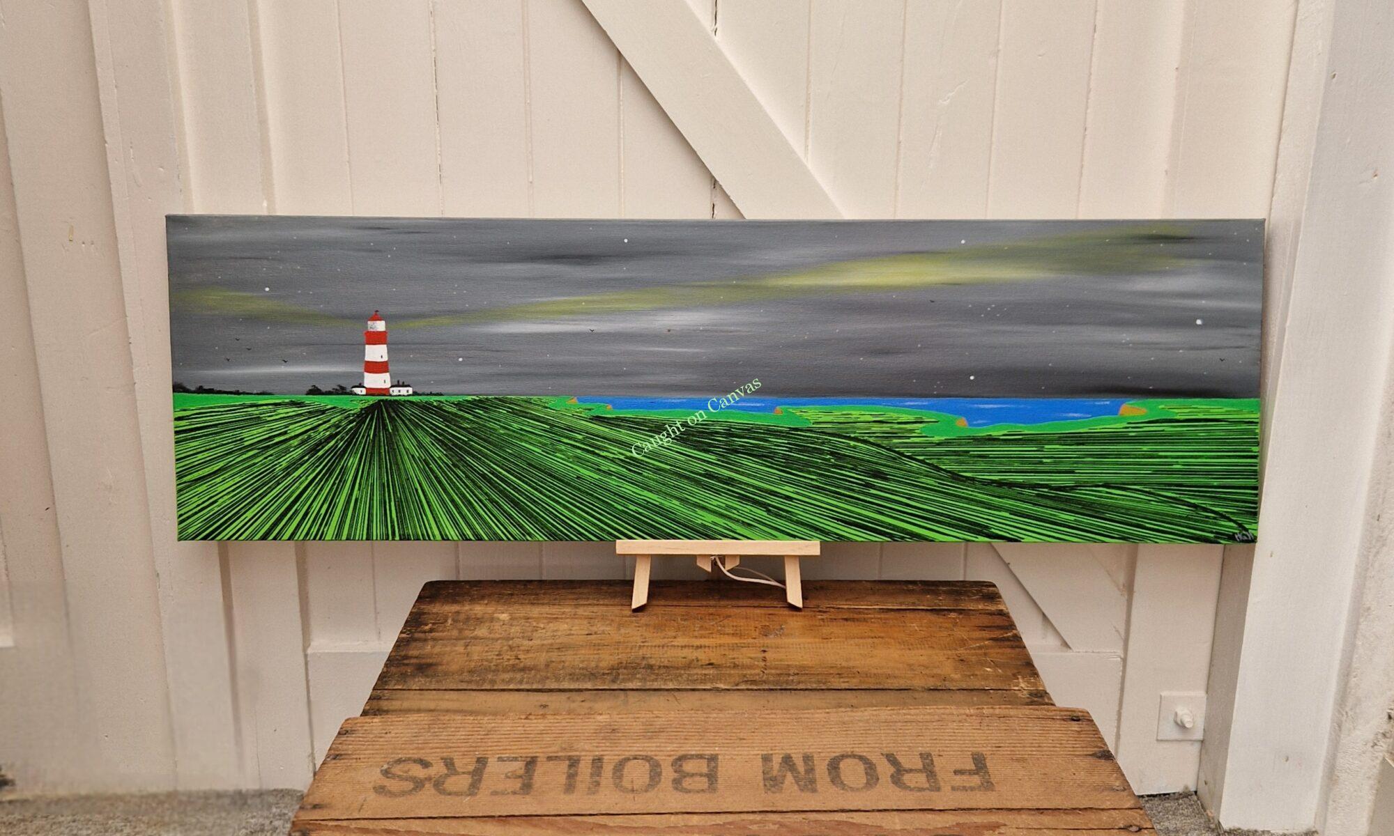 An amazing scene of Happisburgh lighthouse nestled in a field of fresh crops. Canvas size is 100 x 30 x 1.5cm. Signed on the reverse and initialed on the front corner. Free P&P to the UK.