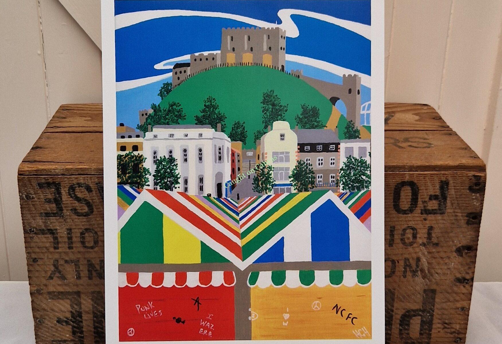 A unique abstract view of the famous city of Norwich, Norfolk, created using acrylic on canvas.