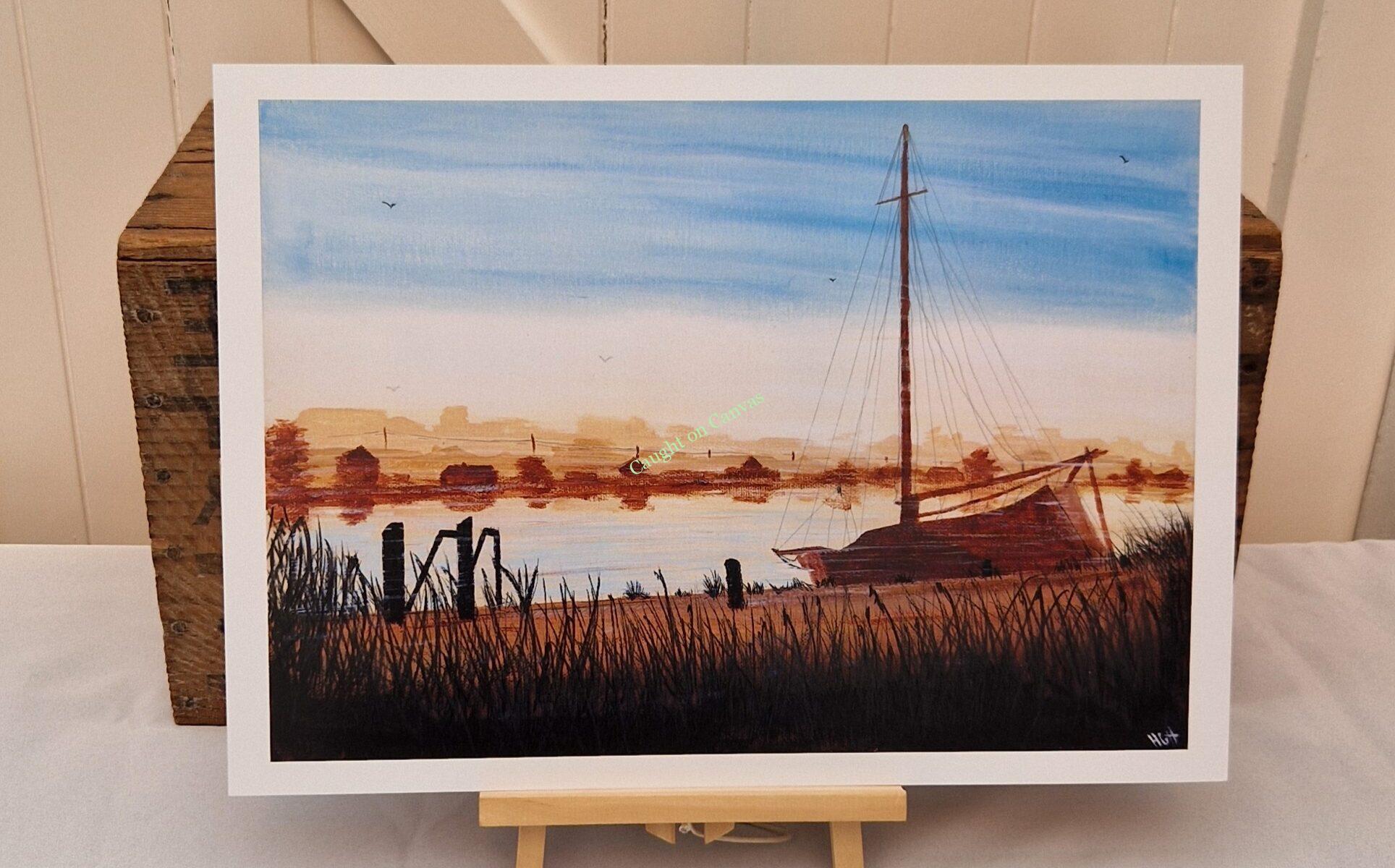 The Norfolk Broads at Potter Heigham on a mist swept morning.