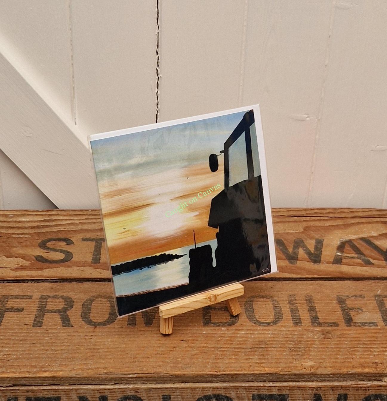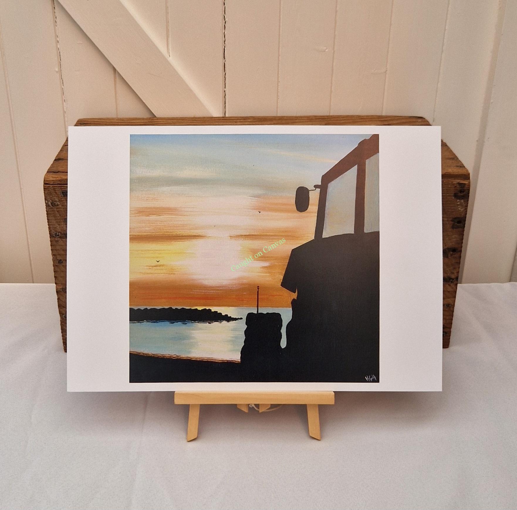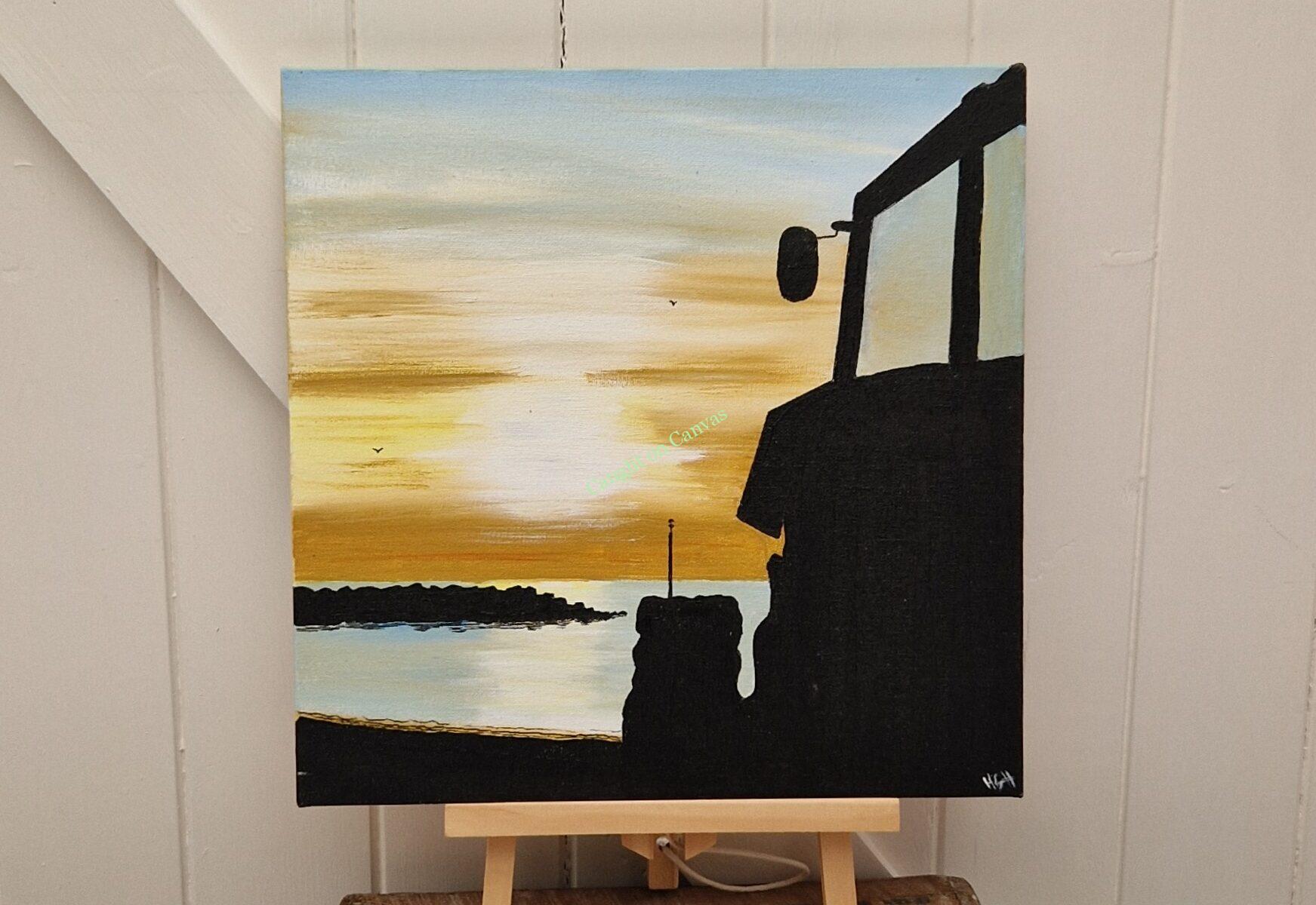 Tractor silhouette at Sea Palling, North Norfolk coast. Created using acrylics. Size is 30.5 x 30.5 x 1.5cm. Canvas signed on the reverse and initialed on the front corner.