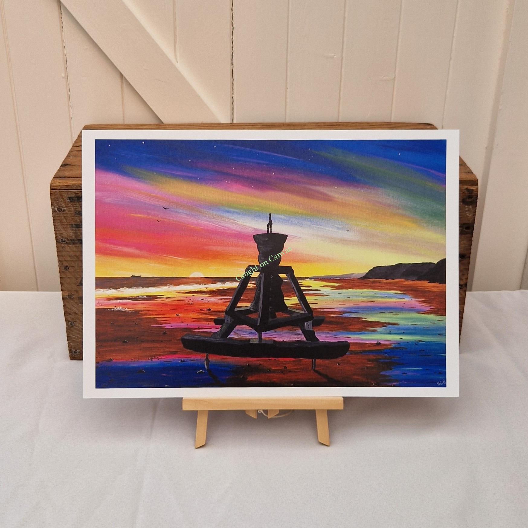 The high tide warning bell situated at Happisburgh beach on the North Norfolk coast, now nearly covered by sand. Canvas size is 42 x 30 x 1.5cm. Signed on the reverse and initialed on the front corner.