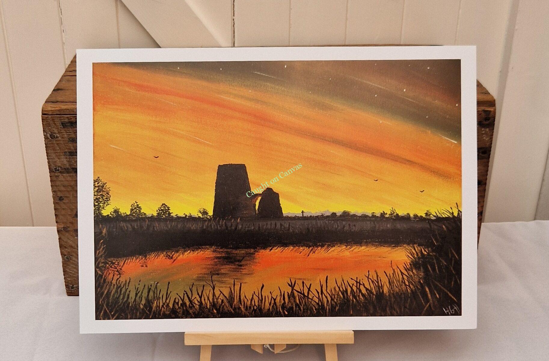 A silhouetted view of St. Benet’s Abbey on the Norfolk Broads.