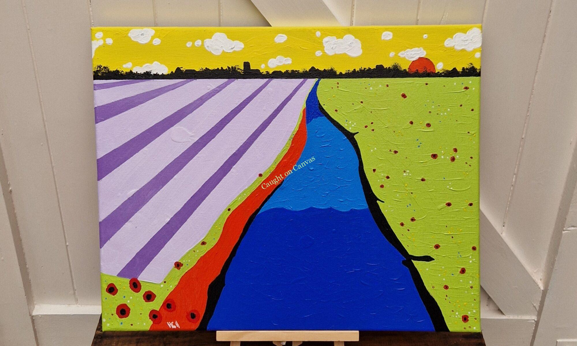 An alternative abstract view of a field at sunset. Created using acrylics. Size is 50.5 x 40.5 x 1.5cm. Signed on the reverse and initialed on the front corner. Free P&P to the UK.