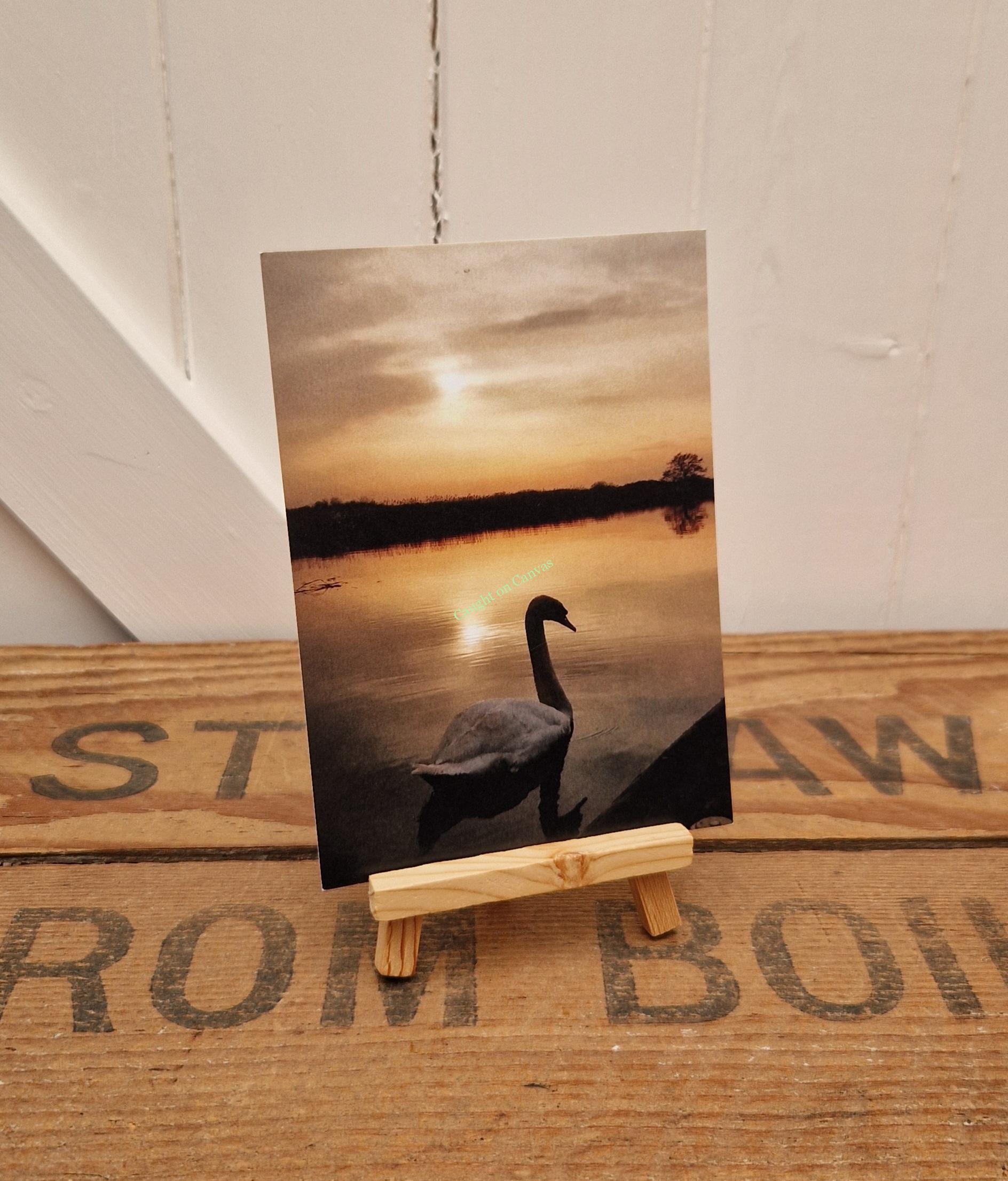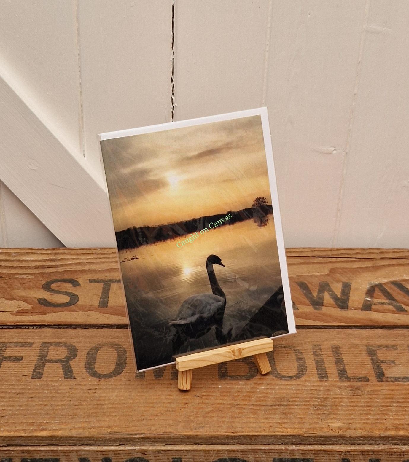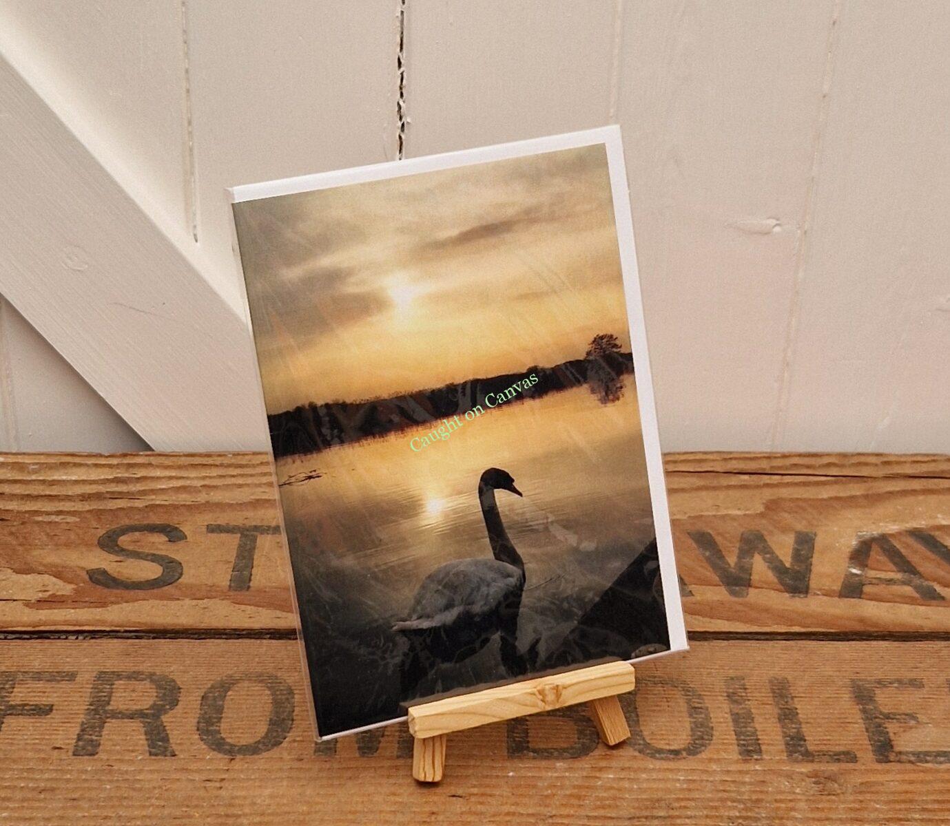 The card has been produced from a photo Horis took of a lone swan at St. Benet’s Abbey on the famous Norfolk Broads. This photo was also the inspiration for a canvas Horis created… Lone Swan at Sunset.