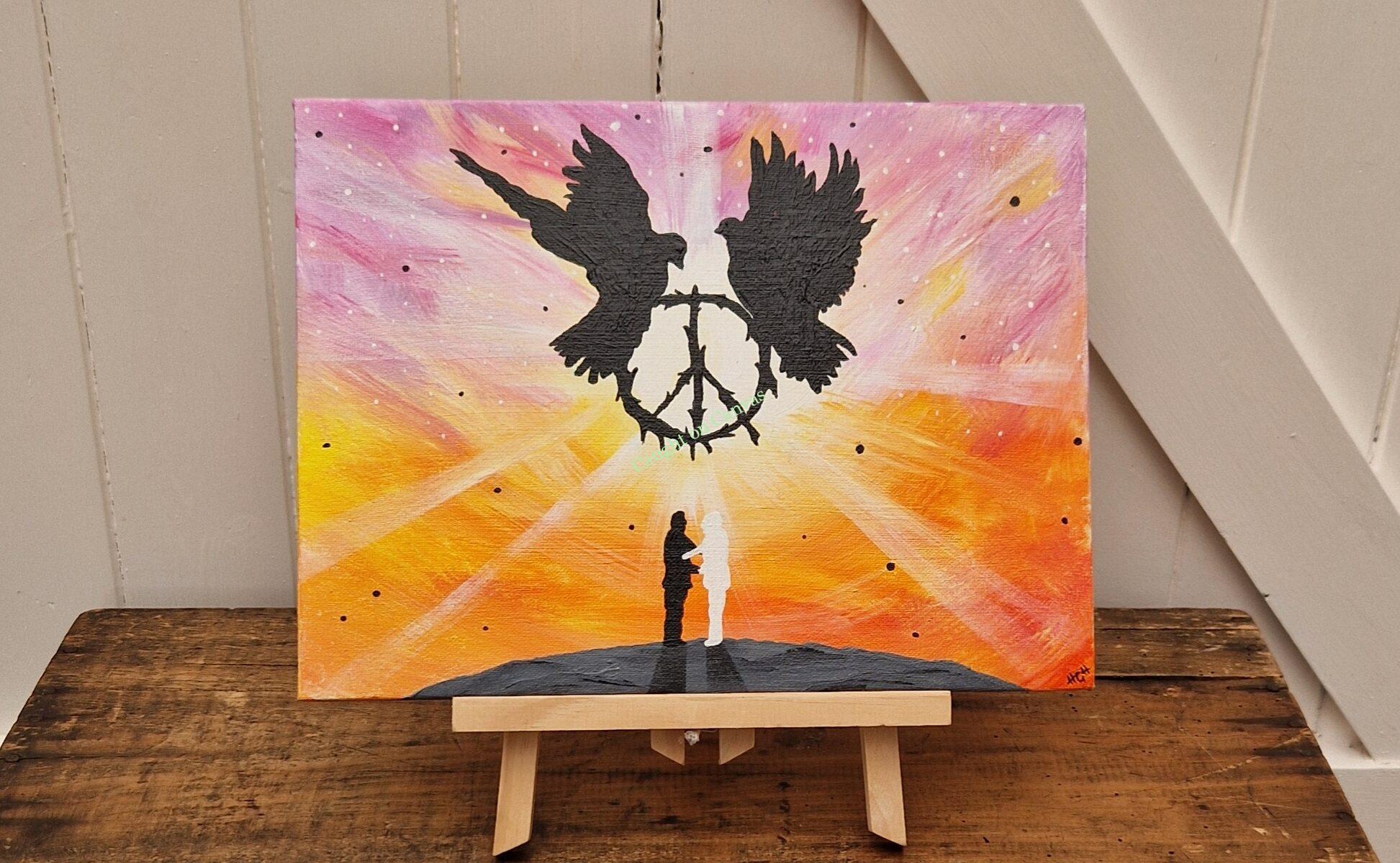 A symbol of Peace and Love. Original canvas painted using acrylic. Size is 30.5 x 23 x 1.5cm. Signed on the reverse and initialed on the front corner.