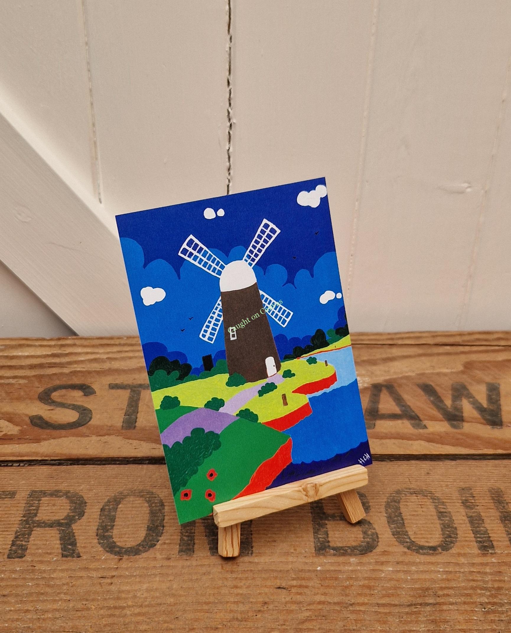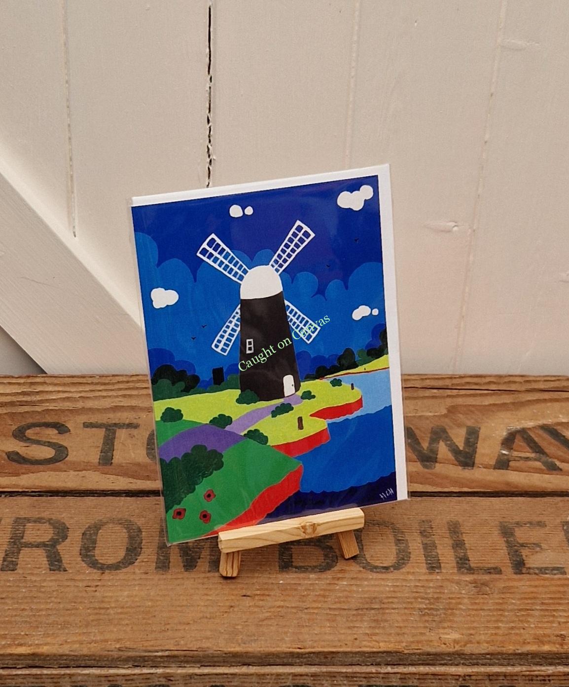 An original canvas created using acrylics, depicting an abstract view of a Norfolk Broads windmill. Size is 42 x 30 x 1.5cm. Signed on the reverse and initialed on the front corner. FREE P&P TO THE UK.